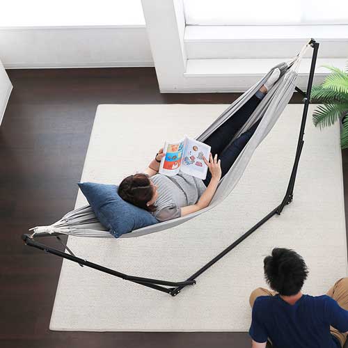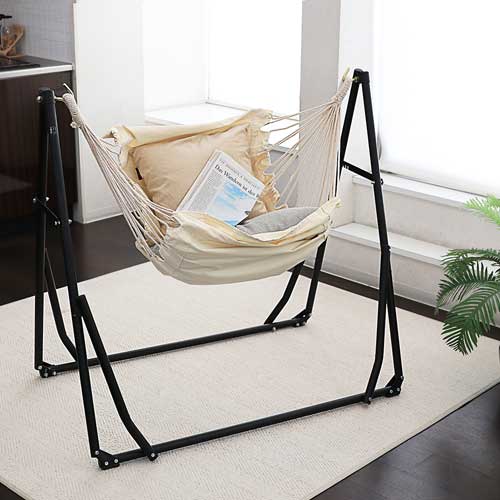 ※別売りの対応商品【ルーフ付ハンモック用シアター[商品番号HNSFF-05]】を取り付けると、外にいながらも1人だけでくつろげるプライベート空間を作ることができます。