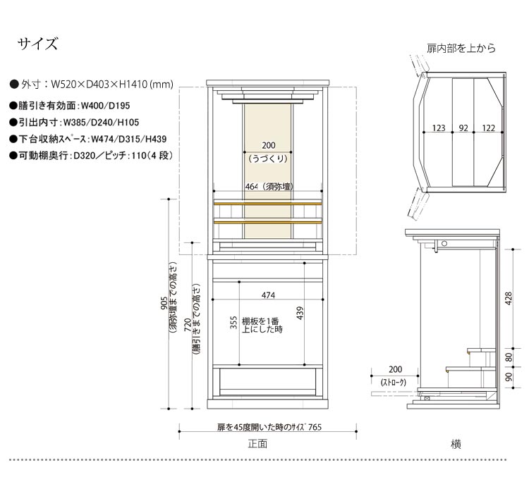 須弥壇は取外し可能なのでご本尊のサイズによって取り外せ便利です。